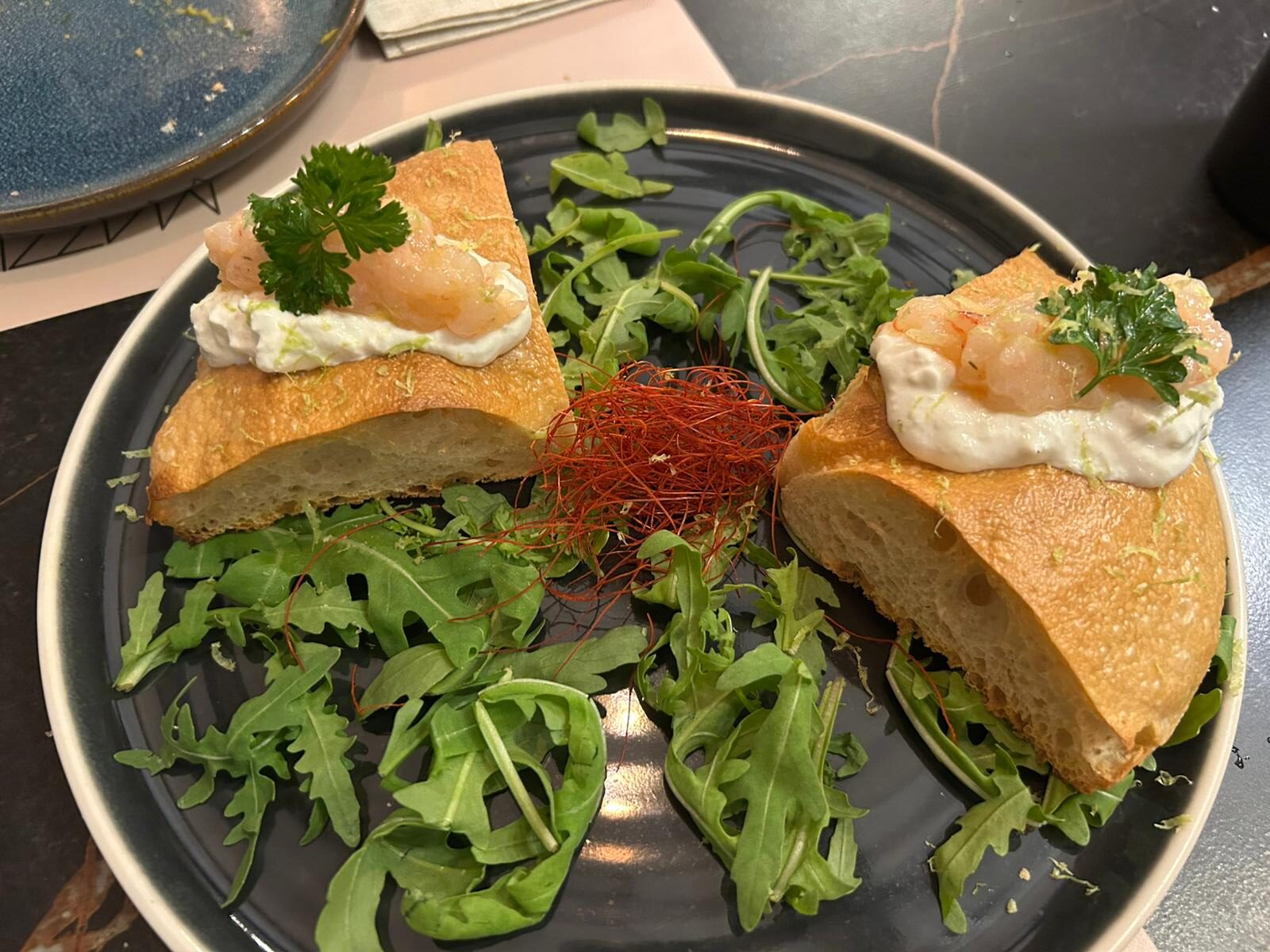 A seguire un leggerissimo padellino con gambero rosso di Mazzara, stracciata di bufala e zeste di limone.