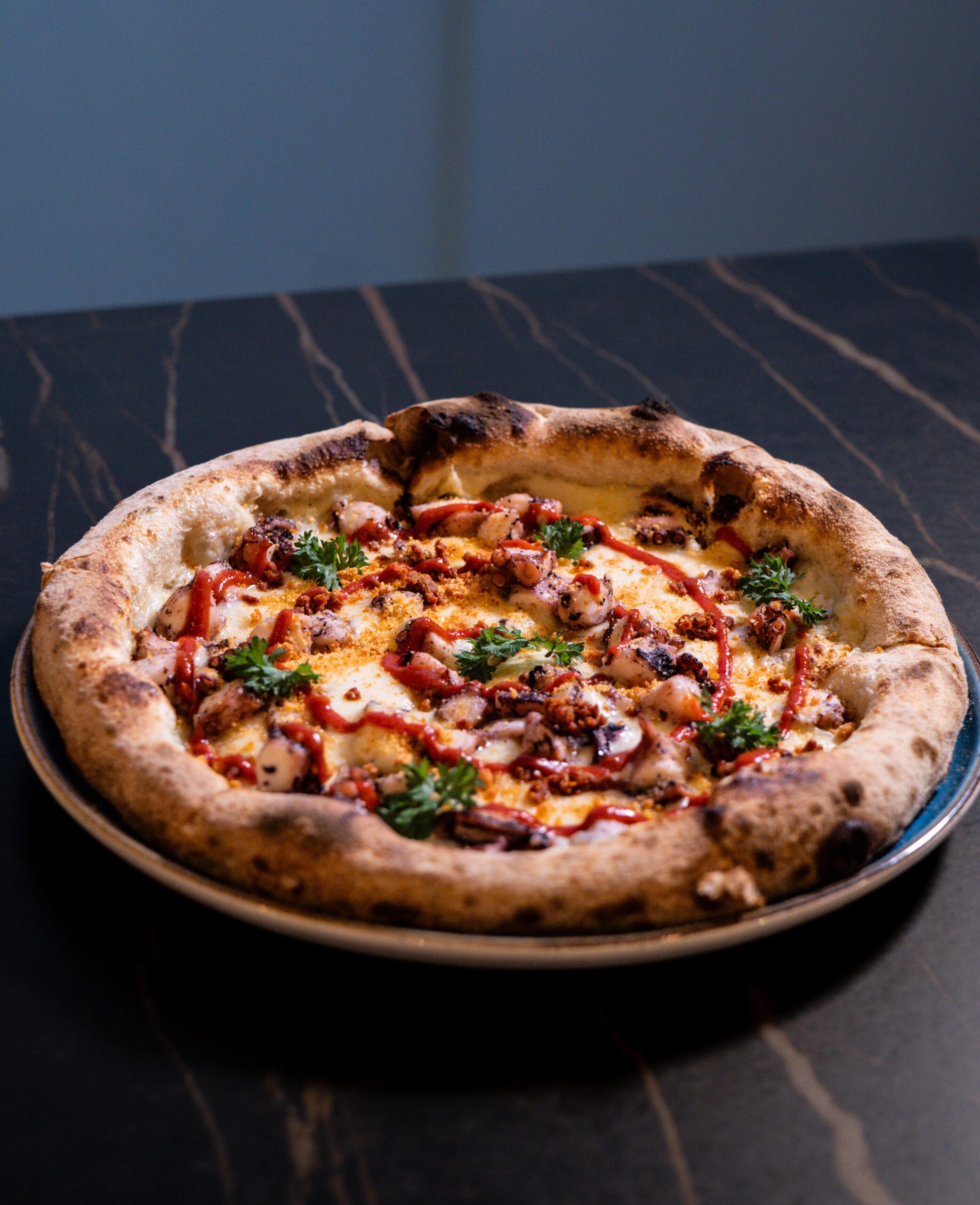 <<La mia è una pizza siculo – contemporanea – specifica – che non si allontana dalla tradizione sia negli impasti che nelle farciture e credo che il termine gourmet non le si addica. D’altre parte la pizza è tra gli alimenti più versatili della nostra gastronomia, è chiaro che la nostra parla siciliano e, nello specifico, anche con il nostro mare. In menu sono sempre presenti, infatti, quelle che prevedono il pesce nel topping, come la Polpo o la Tonno e cipolle a base di tonno fresco scottato in padella, così come la Patate e salsiccia con fonduta di ragusano che rimanda alla Scaccia, il tipico street food della Sicilia orientale>>.