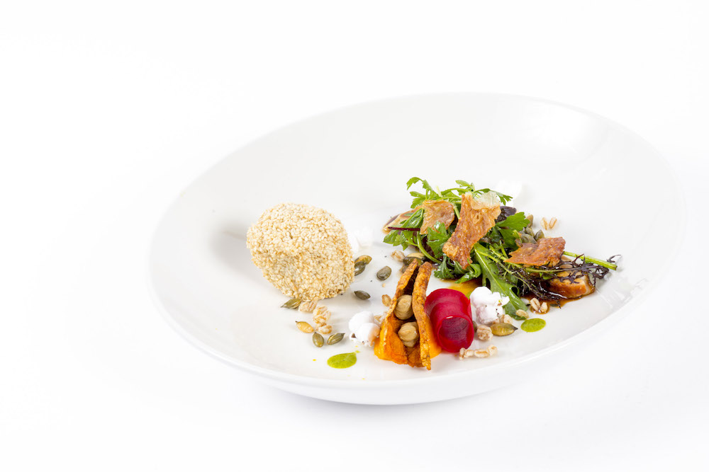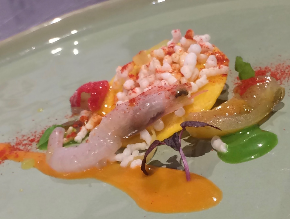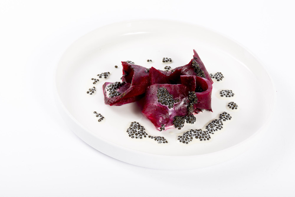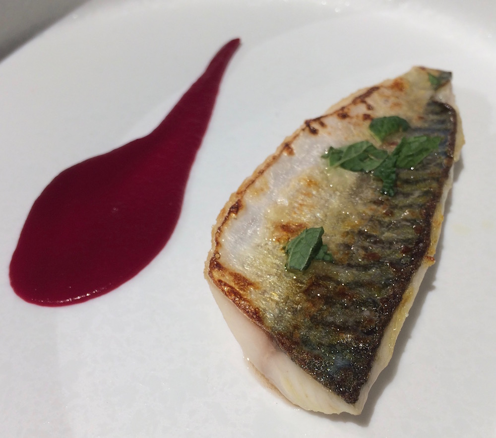 Il piatto successivo ci riporta alla terra con una cottura sotto sale di una barbabietola enorme, condita con panna fresca e caviale; un piatto dalla semplicità disarmante, ma che ci riconduce all’essenziale impreziosito dal caviale, con un contrasto morbido sapido piacevolissimo.