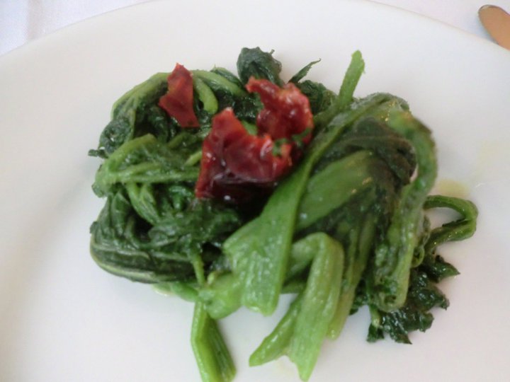 Fagiolini, peperoncini verdi, melanzane, patate al forno o fritte ci ricordano la meravigliosa varietà stagionale della Campania, da secoli vegetariana per necessità. Noi abbiamo provato un piatto che da solo vale il viaggio: talli di zucca ripassati in padella con peperoni cruschi, un bell’esercizio di gusto e memoria per i palati di città.