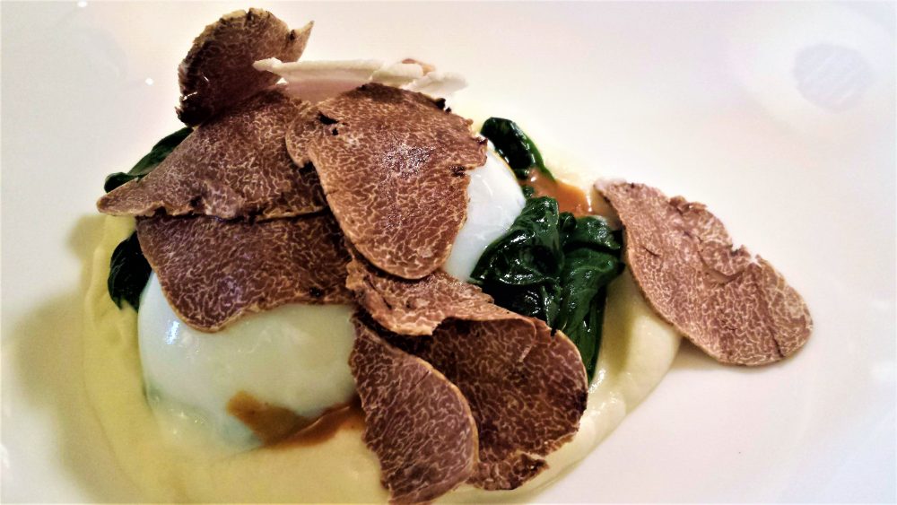 L’indirizzo della carta guarda alla cucina classica italiana, da nord a sud, e c’era da aspettarselo visto l’imprinting della casa madre. Così si alternano i sapori piemontesi di una buona Tartara di vitella, arricchita da una salsa tonnata decisamente pregevole, e l’intensità tutta siciliana degli Spaghettoni con pesto di erbe, pomodori secchi, mandorle e bottarga, ricchi e opulenti tanto da apparire un filo asciutti; oppure il profumo del tartufo bianco, grattato generosamente su un Uovo morbido con spinaci, cavolfiore e nocciole, e il calore di uno Stufato di Fassone, sedano rapa e barbabietole di buon morso, passando per un Risotto, zucca e taleggio ben fatto quanto ecumenico (spirale compresa).