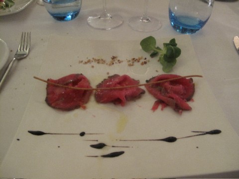 CARPACCIO DI MARCHIGIANA AL FIANO CON OLIO DI OGLIAROLA