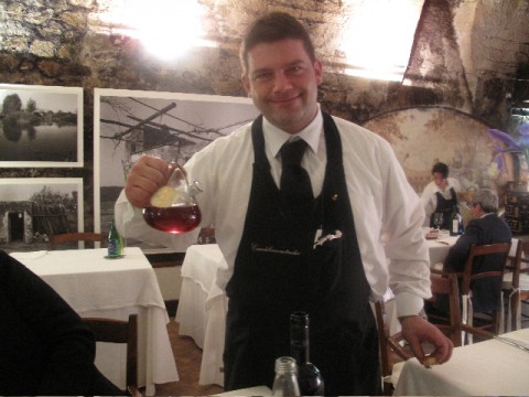 L’atmosfera vivace del locale lo esalta sfumando il clima ospedaliero spesso vissuto in tanti stellati: l’osteria è sorriso, pacca sulla spalla, scambio di opinioni e di bottiglie tra i tavoli. Solo un piccolo borghese compunto e insicuro può essere infastidito dalla normalità delle relazioni umane e pretendere di assimilare una sala da pranzo ad un laboratorio autoptico. O chi, per il cibo come per il vino come per altro, ama l’onanismo spinto, quello cerebrale incapace di godere persino virtualmente.