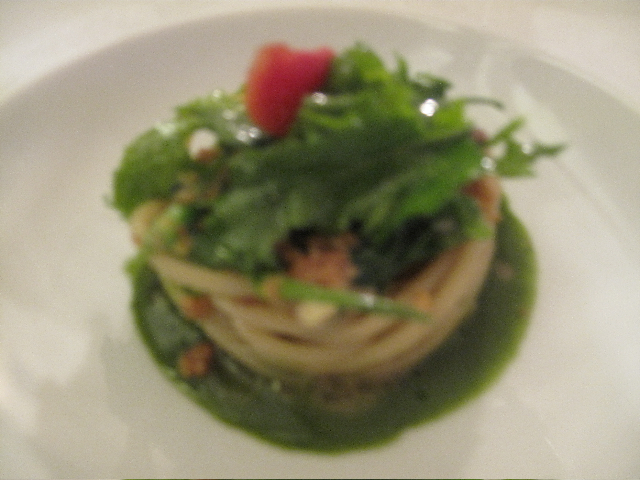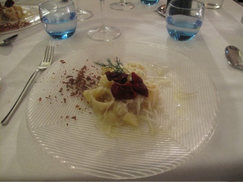 Si vola alti. È il piatto che sognavo di rimangiare da mesi. Quand’è cosi’ per solito rimani sempre un po’ cosi’… è anche migliore di quanto mi aspettassi. Peppe Stanzione la spara nel piatto con una leggera grattata di trifola di tonno, cioè bottarga. Letteralmente uno sballo. Con boccone in bocca cerco un fermo immagine cerebrale. I miei commensali mi guardano preoccupati pensando: il Maffi ci muore così orgasmando di palato.