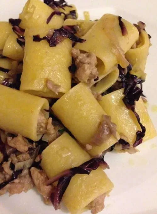 Mezzi paccheri con salsiccia lucana fresca e radicchio 26/11/2013 Torna a: Mezzi paccheri con salsiccia lucana fresca e radicchio Mezzi paccheri con salsiccia lucana fresca e radicchio