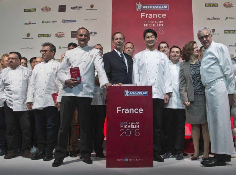 Adombrata dal presunto suicidio del giovane e talentuoso chef Benoît Violier che ieri si sarebbe tolto la vita sparandosi un colpo di pistola, l’edizione 2016 ha inoltre assegnato una terza stella al ristorante Le Cinq dell’hotel parigino George V dove lo chef Christian Le Squer ha sostituito Eric Bliffard che non riusciva a centrare questo obiettivo.
