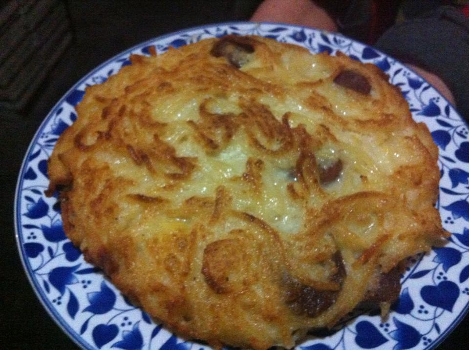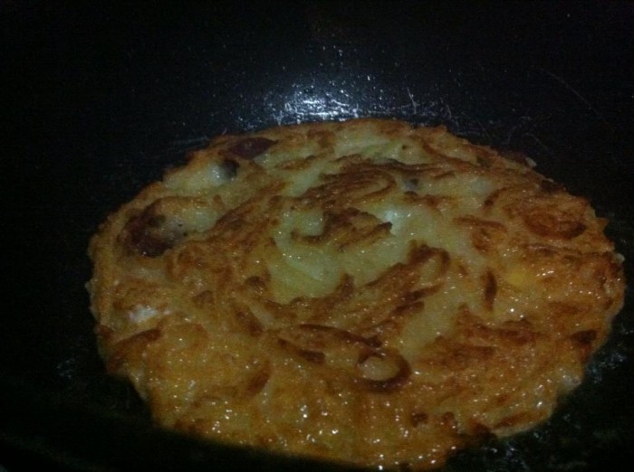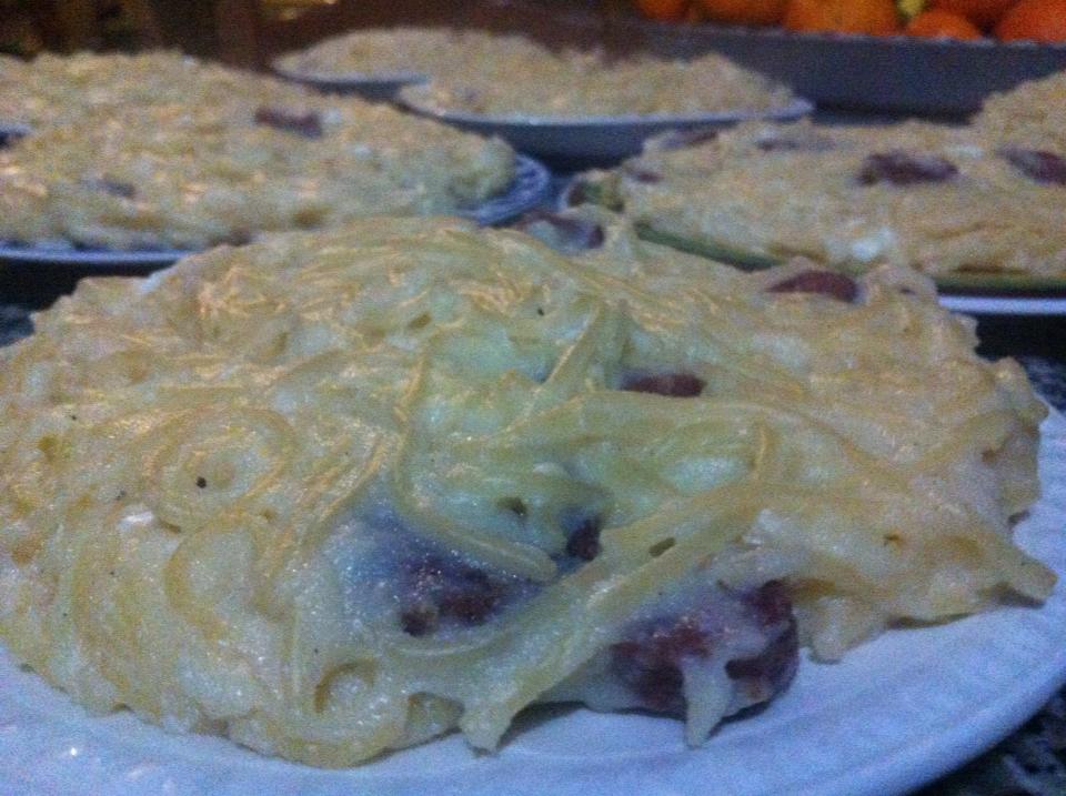sicuramente inusuale questo tipo di migliaccio, con pasta e semola,in più anche in versione “dolce- salata”