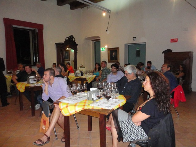 I vini in degustazione sono: Taurasi Antico Castello 2007, Taurasi Contrade di Taurasi 2007, Taurasi Donnachiara 2007, Taurasi Poliphemo 2007 di Luigi Tecce, Taurasi Opera Mia 2006 Tenuta Cavalier Pepe e Taurasi Cinque Querce 2006 di Salvatore Molettieri. Le aziende sono state scelte con l’intento di offrire un’idea ampia delle varie espressioni ed interpretazioni di questo vino di razza, si va dall’idea più classica ed icona della memoria storica qual è il Cinque Querce di Molettieri, alle novità come Antico Castello a San Mango sul Calore, a Contrade di Taurasi presente nel cuore del territorio classico tra le contrade di Case d’Alto – Macchia dei Goti – Coste Morrante, a Luigi Tecce nell’alta valle con la profondità dei suoi vini piacevoli già alla prima uscita e di grande finezza. Alla presenza, infine, di due donne che in questo territorio rappresentano sicuramente un risultato straordinario, Ilaria Petitto titolare di Donnachiara con sede a Montefalcione e Milena Pepe di Tenuta Cavalier Pepe i cui vigneti si estendono tra Luogosano e Sant’Angelo all’Esca. La degustazione è stata condotta alla cieca, spingendo i partecipanti ad individuare l’identità di ognuno dei sei vini proposti, un giochino molto stimolante che riscontra sempre successo e rende l’atmosfera più leggera e conviviale.