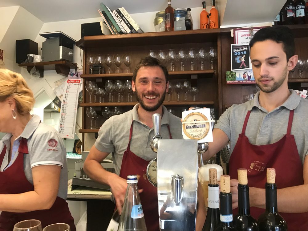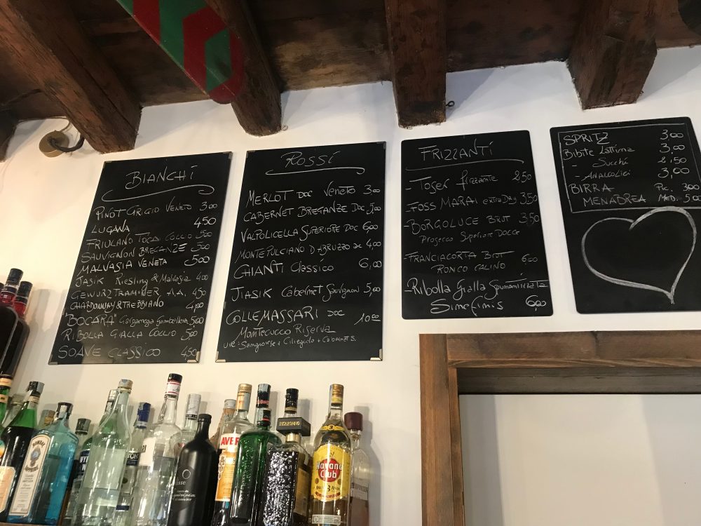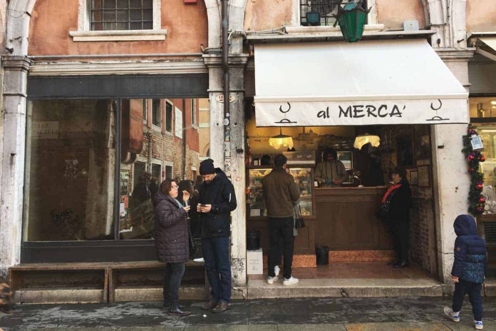 Un buco nel cuore di Rialto, nel Campo della Bella Vienna dove abitualmente i veneziani si ritrovano il sabato a mezzogiorno dopo la spesa al mercato del pesce e della frutta. E’ il regno del cosiddetto “sabato del villaggio” dove a scorrere a fiumi sono spriz al Campari, all’Aperol e al Select e tanto prosecco. Ma la selezione dei vini di questo piccolissimo esercizio non è da sottovalutare: sono stati i primi a tenere Gravner anche al bicchiere. I ragazzi non propongono crostini ma paninetti con salumi e pesce e polpette di carne, tonno, melanzane. E’ facile arrivare a tre-quattro unità in questo regno della chiacchiera. E poi sentire le chiacchiere deformarsi a piacimento.