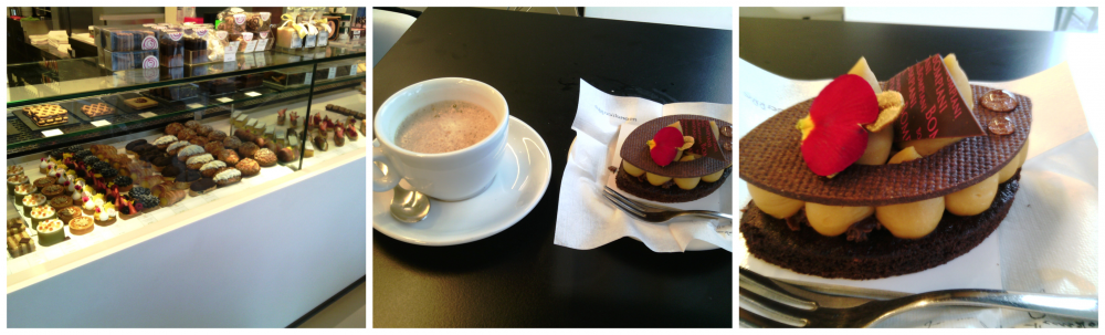 In foto: L’entrata – Il banco delle monoporzioni – Cioccolatini assortiti, all’aceto balsamico, al mango, alle arachidi, al pistacchio, fondente, cremino tre cioccolati