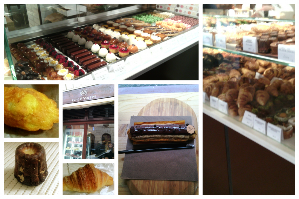 In foto: L’entrata – Il banco con le monoporzioni- La parte dedicata al pane e ai lievitati – Eclaire al cioccolato fondente – Il croissant