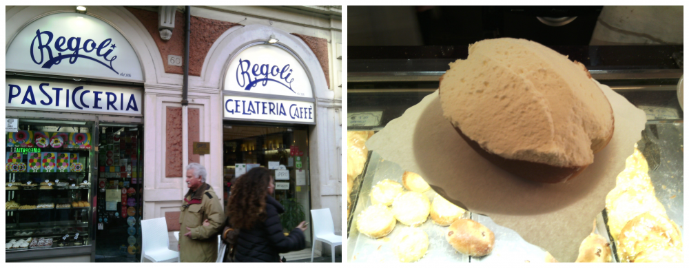 Entrare da Regoli, a due passi dalla stazione Termini, appena sceso dal treno ti rimette al mondo e al contempo ti catapulta subito nella storia recente di Roma. Tantissime le tentazioni golose a cui cedere, ma se si è dei novelli avventori, è obbligatorio prendere il maritozzo ricolmo di panna montata: un dolce bauletto dagli aromi di latte e miele, nel quale emerge in fondo un delicato sapore di sale che va a dare bilanciamento e corpo alla rotondità della panna, soda e volutamente non zuccherata.