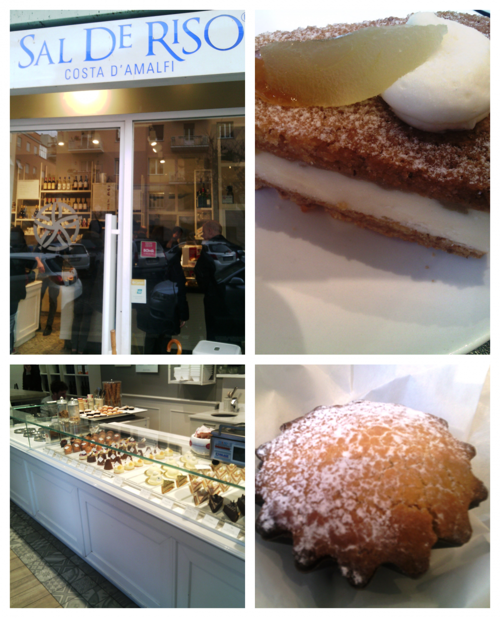 In foto: L’entrata – Il goloso banco dei dolci – La sfogliata frolla – La torta ricotta e pere