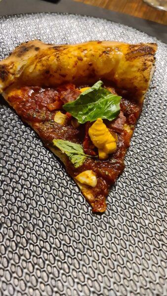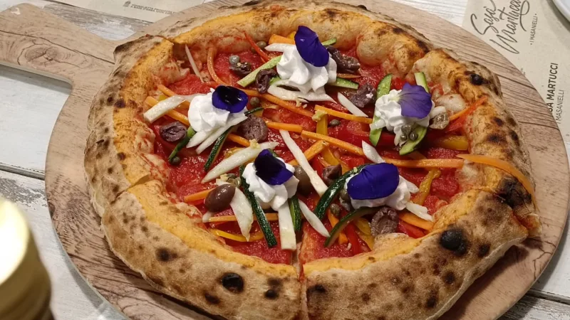 - Pizza Mangiafoglia de I Masanielli di Sasà Martucci a Caserta. Una pizza tutta vegetale con una “ricotta” ottenuta dalle mandorle. Bontà e sostenibilità il binomio vincente del futuro e Sasà lo ha capito meglio di tutti.