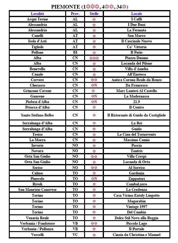 Ecco le stelle Michelin in Piemonte nell’edizione 2017 della Guida appena uscita. Un ristorante con tre stelle, Piazza Duomo di Enrico Crippa ad Alba, 4 ristoranti con 2 stelle e ben 34 con una stella.