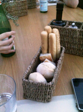 Conto. Relativamente caro. I costi dei piatti che abbiamo scelto già li sapete. Aggiungete 3 euro per un’acqua naturale da mezzo litro, 8 euro per il calice di ribolla gialla e 6 euro per il mio rosato d’aglianico, 8 euro per una fetta di torta caprese in due, 2 euro e mezzo per l’espresso con tanto di bocconcino dai-dai e 4 euro per il servizio, compreso il cestino con panini di grano duro, tre cubetti di focaccia fritta – secca – e quattro grissini al sesamo). Totale 54 euro.