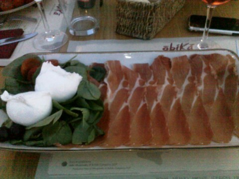 Forse perchè immaginavano una possibile risposta: a Milano, per una mozzarella di bufala campana dop di quelle buone ho speso la metà (24 euro), non più di un mese fa. Non solo. Punto primo: era grande quanto le tre che abbiamo mangiato ad Obikà ed era servita con pomodorini e prosciutto San Daniele DOP. Punto secondo: abbiamo bevuto una mezza d’acqua naturale e un calice a testa di Fiano di Avellino 2008 di Pietracupa e la bottiglia l’ha aperta davanti a noi. Il fatto curioso è che il posticino dove l’ho mangiata (L’Antico Casale, piazza del Tricolore 4, tel. 02/45497230 – consegna anche a domicilio) è una salumeria con qualche tavolino, un ambiente semplice e accogliente, sicuramente meno cool di Obikà. Ma lì, almeno, il palato ha goduto!