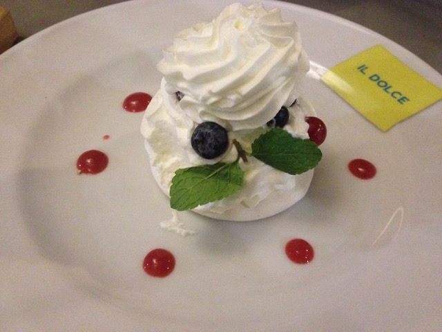 Un buon calice di merlot incoraggia la risata, la musica d’accompagnamento è bella. Anche i dolci sono buoni. Il rapporto qualità prezzo mi lascia credere che tornerò.