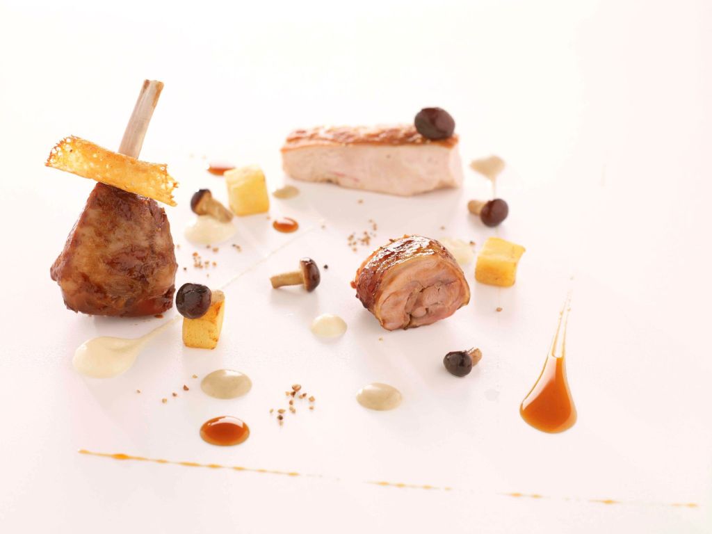 Piatto apparentemente semplice, con sapori atavici e moderni in contemporanea ed in cui risalta la mano sicura dello chef. Altro secondo: faraona petto e coscia, cavolfiore, pepe rosso e funghi porcini.
