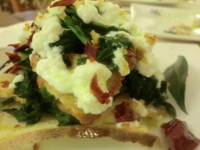 Alcune cose, chiamamoli pure apetizer, sono preparati, come questa pizza di scarole e olive.