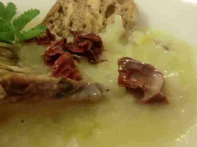 La zuppa di cipolle bianche è delicatissima, dolce e fresca, con una grande spinta che spinge a terminarla.