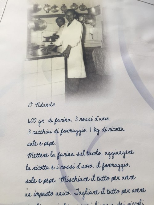 Nel menu del Giardiniello troviamo la riproposta la ricetta scritta a mano da Nunziatina.