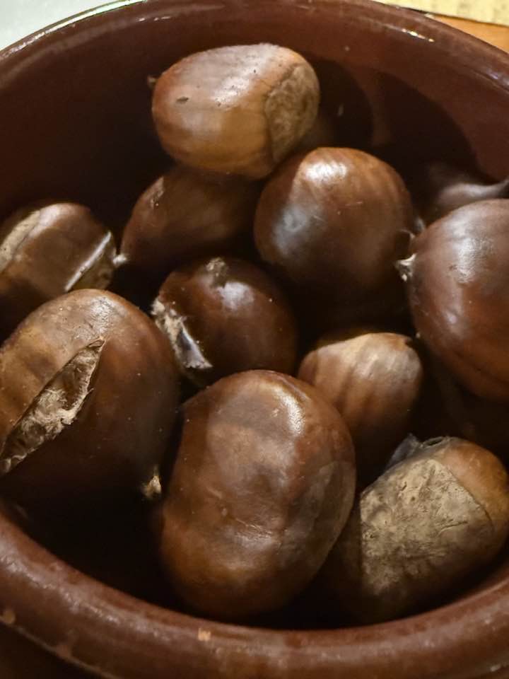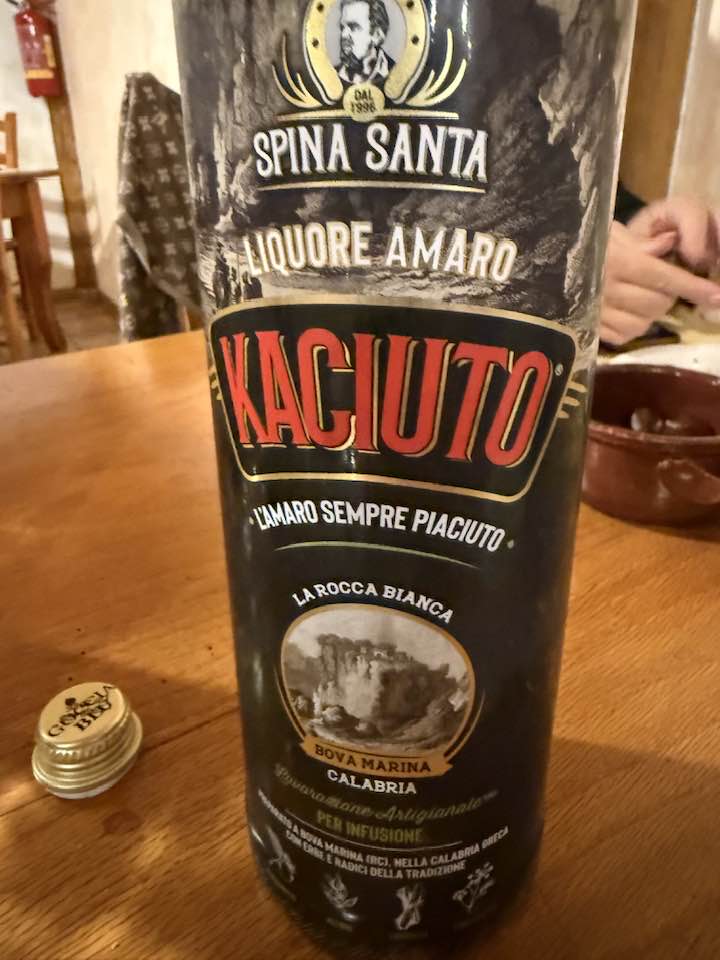 C’è ancora tempo per sgranocchiare due castagne arrosto, con un goccio di Kaciuto, davvero gradevole, con quella nota agrumata di bergamotto che caratterizza molti fine pasto calabresi e che rinfresca il palato, lasciandolo piacevolmente profumato.