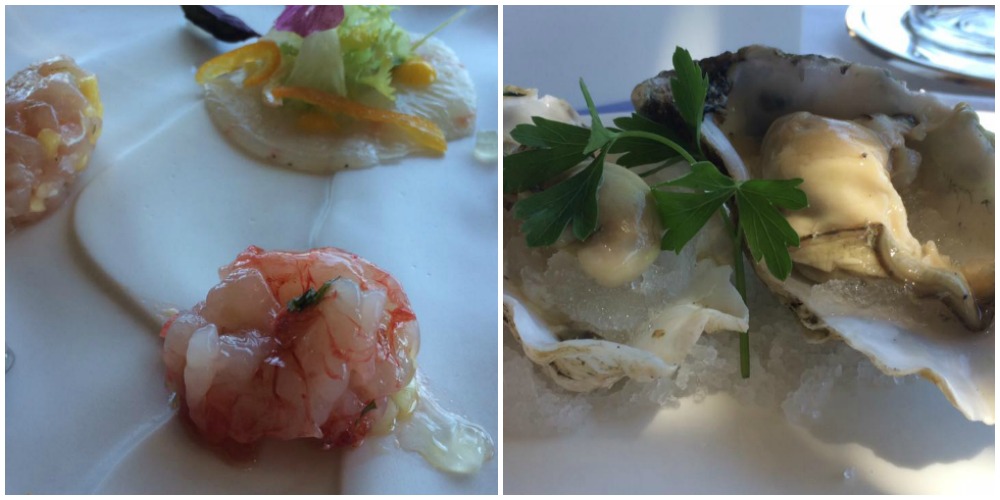 Monastero Santa Rosa, crudo di gamberi e ostriche