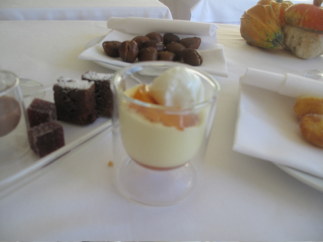 LA SPUMA DI CAPRINO CON CACHI, LO SBRICIOLATO CON CREMA CHANTILLY E ARANCE E IL CIOCCOLATO IN CINQUE CONSISTENZE