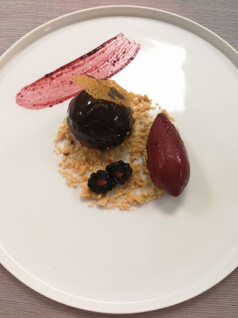 I dessert di Barrique, invece, sono eleganti ed elaborati: il cremino alla nocciola è stato trasformato, per il periodo natalizio, in un ricco torrone alla nocciola. Le chips di zenzero, che rappresentano appieno la personalità del creativo e dinamico pastry chef, sono un’esplosione elettrica per gli ospiti della sala. Proposte che non deludono mai per accostamenti e ingredienti, come il Gianduiotto cremoso con frolla Linzer, mandarini e uva o la sua Cheesecake al limone, fiore di ibisco e crumble integrale, un dolce che segue le evoluzioni di Andrea in pasticceria.