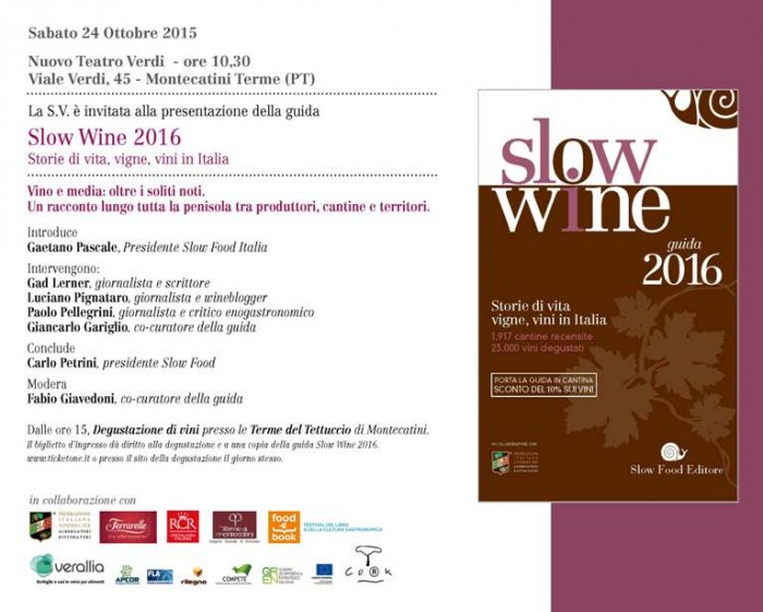 Montecatini Terme, 24 ottobre. Presentazione di Slow Wine 2016 23/10/2015 2.2 MILA LETTURE Presentazione di Slow Wine 2016 a Montecatini Terme