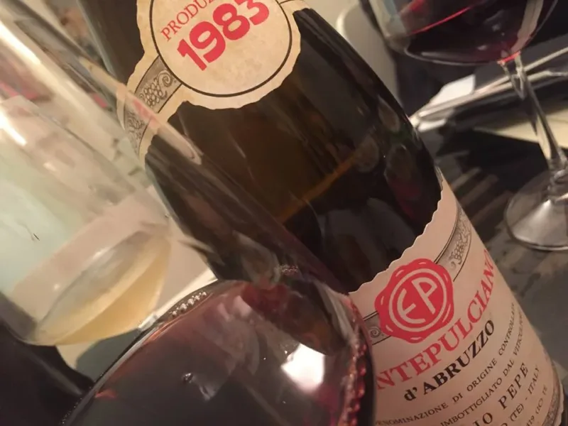 Quando con l’indice faccio capire che desidero un vino di Emidio Pepe ho un motivo psicologico molto preciso: certo affidabilità nella bottiglia perché mi voglio concentrare o sul cibo o sulla compagnia. Il motivo è molto semplice: questi vini artigianali riescono a garantirti quella sicurezza meglio di quelli più standardizzati ma hanno il vantaggio di non essere banali e omologanti. Un po’come la pizza del forno a legna rispetto a quelle surgelate. In questo caso però l’emozione è costituita dal tempo trascorso: scegliamo la bottiglia a Cap’Alice, uno dei pochi locali del buon bere napoletano, arricchito dalle serate organizzate da Marina Alaimo con produttori, tra cui anche la verticale con Pepe che hanno sempre storie lunghe e appassionanti da raccontare al pubblico. L’anno è il 1983, annata piuttosto calda per quel decennio freddo, ma siamo sicuri del fatto nostro perché si tratta di Pepe. Il retroetichetta è molto chiaro, è quasi un manifesto di quel movimento di vini naturali cresciuto in Italia come reazione al pomposo stile anni ’90: si parla di uve trattate senza chimica e di vino non filtrato, lasciato decantare con calma. La bottiglia regala le sue soddisfazioni e conferma l’icnredibile capacità di tenuta del Montepulciano.