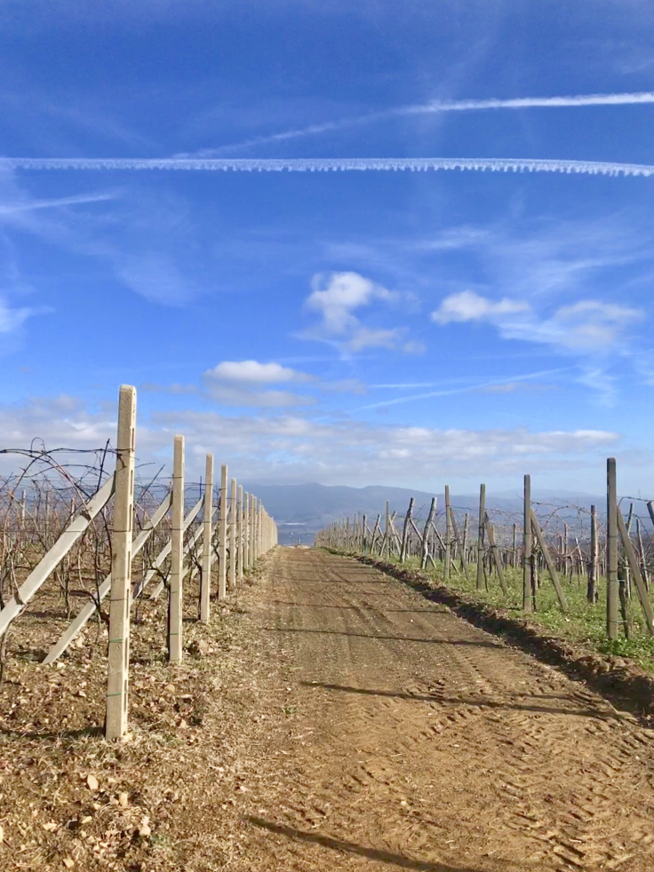Dalla vetta del vigneto più alto di Monterotondo il panorama si estende da nord-est verso gli Appenni e continua verso sud est in direzione di Arezzo. Gli alberi di castagno che si trovano a quell’altezza, interrompono la geometrica perfezione dei filari, che ricoprono il crinale in forte pendenza. Una esposizione ottimale per le viti, che qui catturano tutta la luce solare fin dalle prime luci del mattino portando i grappoli ad ottenere adeguate maturazioni. Sul versante che guarda in direzione nord est nel lato più fresco si trova qualche filare di uva a bacca bianca, malvasia bianca toscana, malvasia di Candia aromatica e trebbiano. Da queste uve nasce il Sassogrosso,un vino bianco inusuale per il territorio, dotato di grande freschezza e profumata piacevolezza, una sfida ed un vezzo per Saverio, il quale da sempre nutre molta passione per i vini bianchi del Nord.