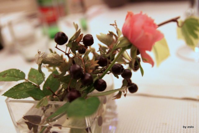 Mise en place curata ma essenziale, eppure raffinata con le bacche di sambuco e i fiori appena raccolti.