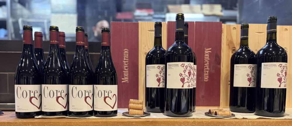 Si parte con Core Rosso 2022, il vino che più di ogni altro racconta il desiderio di Montevetrano di aprirsi a un pubblico più ampio senza perdere identità. Nato nel 2011 come progetto parallelo, Core è l’altra anima della cantina, un Aglianico in purezza che porta nel nome la parola core, cuore, e nel bicchiere la stessa tensione emotiva che ha reso Montevetrano un simbolo. Accanto al Core Rosso si è affiancato negli anni il Core Bianco, nato dall’incontro tra Fiano e Greco, e – piccolo spoiler – è in arrivo anche un Core Rosato, naturale estensione di un progetto che continua a rinnovarsi restando fedele al suo linguaggio.