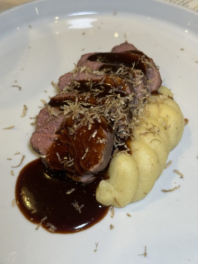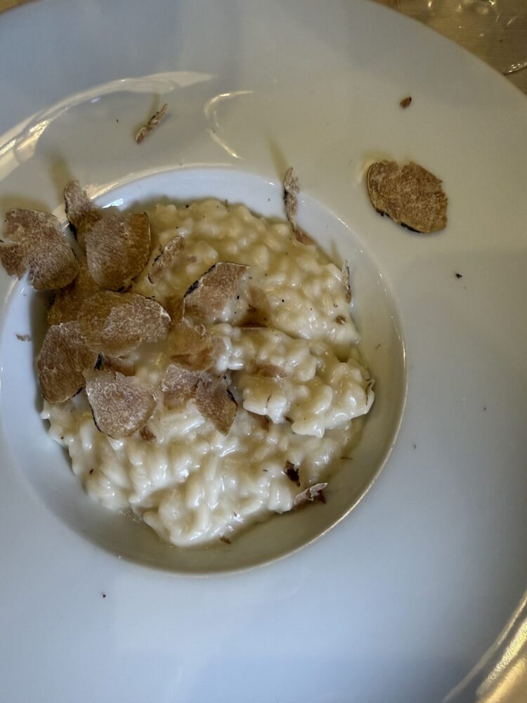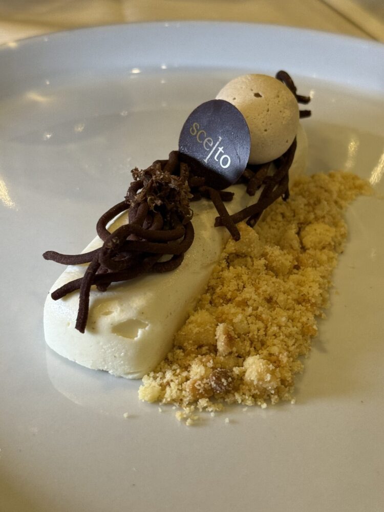 Il Mont Blanc di castagne e tartufo bianco accompagna gli ultimi sorsi. La voce di Carlo Sarrantonio riporta tutti alla concretezza del momento, un ringraziamento alla cucina, al servizio e a chi ha reso possibile questo incontro tra vigna e bosco. La chiusura è silenziosa, il profumo del tartufo si intreccia all’aroma del vino e il tempo sembra sospeso.