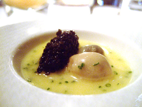 Gelée de Iranian caviar à la creme de chou-fleur de Ménatine: non l’ho assaggiato, impegnato come ero a gustarmi l’aragosta, ma mia moglie dice che era molto buono specialmente l’abbinamento con il cavolfiore di Ménatine che mi dicono cresca solo in questo periodo.