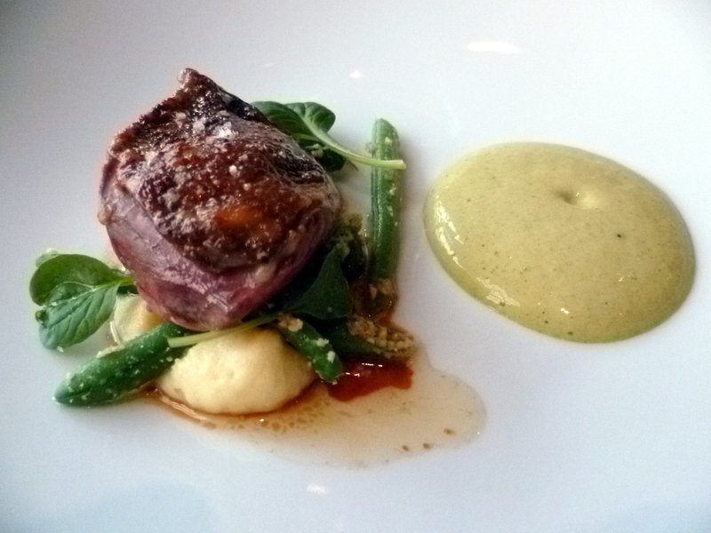 Entrées: homard bleu et sa polente cremeuse au thym, truffes noires du Perigord avec fenouil braisé à la vanille: ottimo antipasto, il sapore freschissimo dell’aragosta si sposa benissimo con i tartufi e, strano a dirsi, con il finocchio alla vaniglia, piatto da lode.