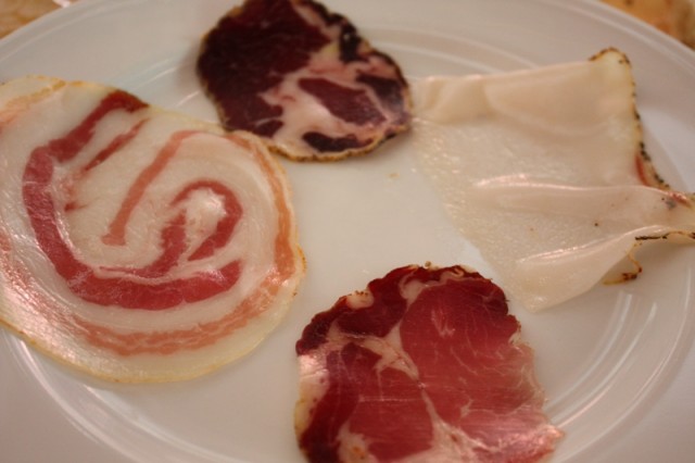 Le foto dei piatti sono bellissime………….io sono venuto una chiavica………molto meglio è venuto il maiale nero………non dico di essere più bello del suino ma almeno pari concedetemelo……..idem dicasi della fiduciaria De Lucia a cui le foto non rendono merito dell’avvenenza che la fanno una delle candidate papabili alla vittoria a Miss fiduciaria slow 2011.Scherzi a parte è stata una bella giornata dove i protagonisti sono stati Dino e i suoi salumi poichè è davvero raro di trovarne di così buoni.Il merito va sì alla razza ma soprattutto al tipo di alimentazione dei porcelli e alla sapiente stagionatura dei salumi che ricordo essere senza conservanti.Una giornata da ripetere ed è la prova che dinanzi a un buon piatto anche passate incomprensioni passano in secondo piano.Ad Maiora.