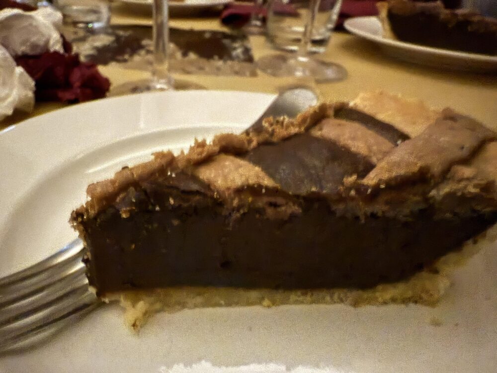 A chiudere la serata una crostata cioccolatosa di Pino, che è un must di quando ci sono io a guidare le degustazioni, perché mi piace troppo.