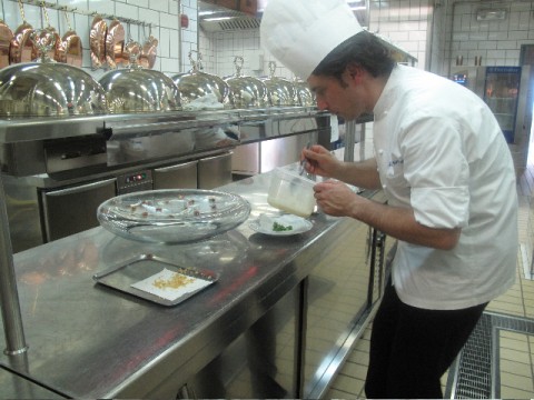 Dunque il primo punto è la sfida. Dalla cucina linda e profumata dove si lavora senza parlare offrendo la possibilità di mangiarci dietro senza rischi di mal di mare, al piatto composto, non semplicemente presentato pulito.