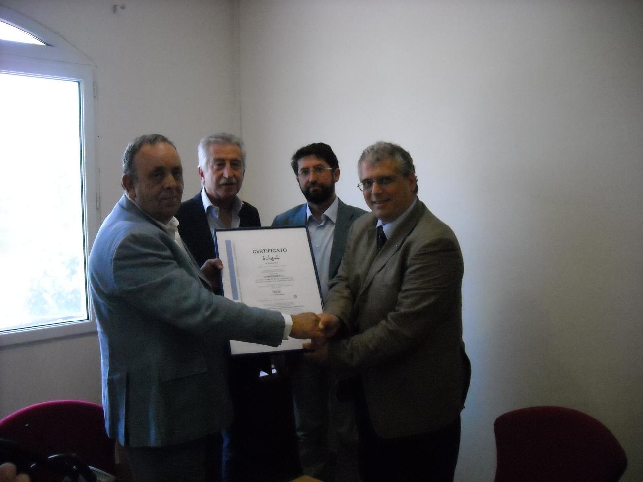 Questa mattina il direttore del Consorzio di Tutela della mozzarella di bufala campana Dop, Antonio Lucisano, e l’imam Abdallah Massimo Cozzolino, direttore della moschea di Napoli e presidente dell’associazione culturale islamica “Zayd Ibn Thabit”, hanno consegnato all’azienda “La Baronia” di Castel di Sasso, in provincia di Caserta, la prima certificazione in Italia di conformità “halal”, sostantivo arabo che significa “lecito”, ovvero che il prodotto può essere consumato dai musulmani osservanti ed è conforme ai dettami del Corano e della Sharia