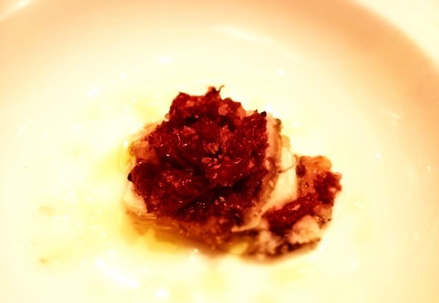Benvenuto dello chef con tortino di mozzarella di bufala, alici e pomodori rossi secchi