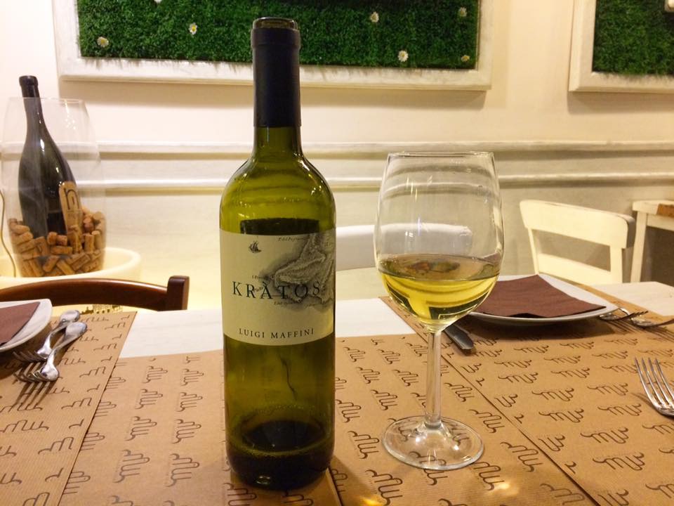 In abbinamento alle portate di mare una perla della cantina. Kratos 2006. Una chicca enologica del vino in Campania. Scattante purezza con qualche nota agrumata. Un grande vino dal prezzo contenuto. Tonico e saputo.