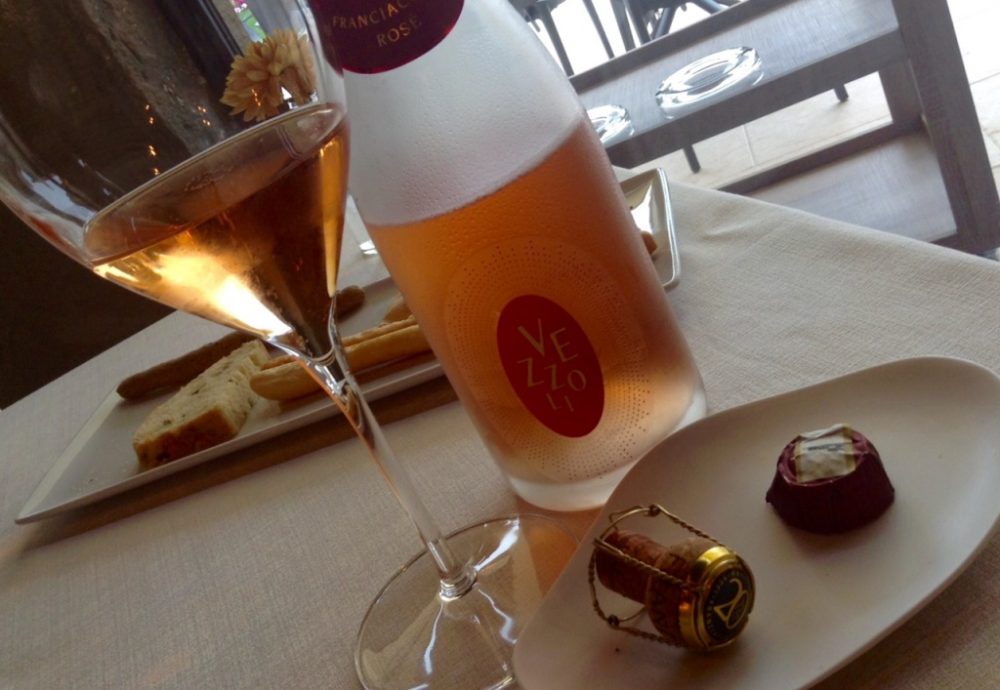 Nadia, Erbusco, le bollicine di Vezzoli, uno dei migliori rosé della Franciacorta a chilometro zero (l’azienda è di Erbusco) sono in carta a euro quaranta, dal vino della porta accanto ci si potrebbe aspettare un ricarico inferiore, ma ci sta, rosé di gran soddisfazione, il godimento è persistente come “le mille bolle”, rimando, a tal proposito al blog di Ziliani che di questo prodotto ha scritto un articolo di piacevole lettura e di estrema chiarezza, per chi volesse approfondire…mentre le bollicine (un calice) incluse nel business lunch non sono in carta, cosa che a questi livelli non gradisco e che denota, non azzardo,…ognuno tragga le proprie conclusioni.