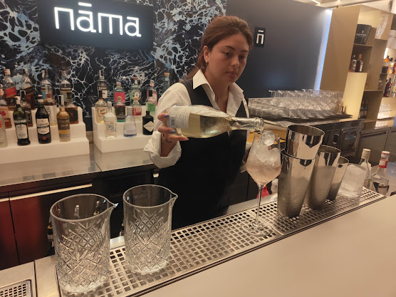 Alla barlady Lucrezia Scotto e alla leggenda di Lucifero che si dice fosse caduto nelle acque del Lago d’Averno è dedicato il drink Lu-Lucifer con vodka al peperoncino, liquore al peperoncino, prosecco e selz e per chi vuole un analcolico ecco Free Nama in cui spiccano gli aromi dei fiori di sambuco.