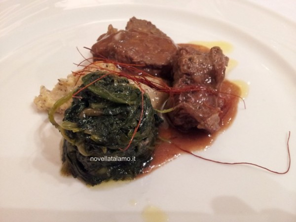il secondo di Tommaso Morone: stracotto al Chianti Riserva e more su soffice di polenta Taragna e cicoria campestre saltata