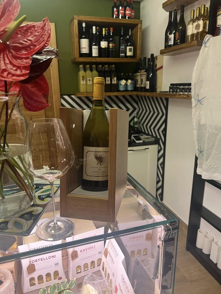 Due olivi e una seduta esterna non devono confonderci: non è l’ Abraxas, ma il negozio dell’Abraxas. Per mangiare bisogna sempre salire le scale, qui si comprano invece gran parte dei prodotti che vengono usati in Osteria. Nando Salemme è anzitutto un appassionato, ma il suo essere metodico lo ha fatto andare oltre la semplice passione e insieme alla moglie Vanna ha costruito un riferimento assoluto che va ben oltre il territorio da cui trae ispirazione, i Campi Flegrei a Nord di Napoli.