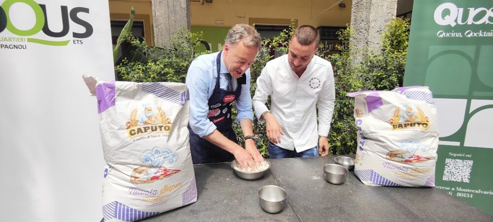 Ma ovviamente immancabili la sua pizza margherita e la marinara. Il tutto al termine della masterclass che Peppe Cutraro ha tenuto con gli studenti dell’alberghiero Elena di Savoia nella corte di Foqus ai Quartieri spagnoli, proprio negli spazi della scuola elementare frequentata da Peppe Cutraro, dove è tornato per l’iniziativa promossa dal Consolato generale di Francia a Napoli e dal Comune per la settimana franco-napoletana. E l’ambasciatore per la prima volta si è cimentato nella realizzazione dell’impasto, nella stesura del disco e ha condito e infornato la sua pizza margherita.