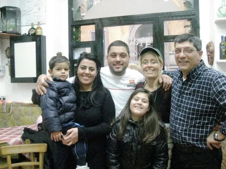 Napoli, Via G. Gigante: la famiglia Romano, quattro generazioni di autentica cucina partenopea. Da dx Papà Mario, Mamma Maria, il figlio Gaetano con la moglie Giovanna e i due figli Claudia e Mario jr. Mario e Maria, pur avendo l’energia di ragazzini, sono già nonni. L’attività è gestita dal figlio Gaetano, ma, l’anima del locale sono loro due, 62 anni Mario e 56 Maria